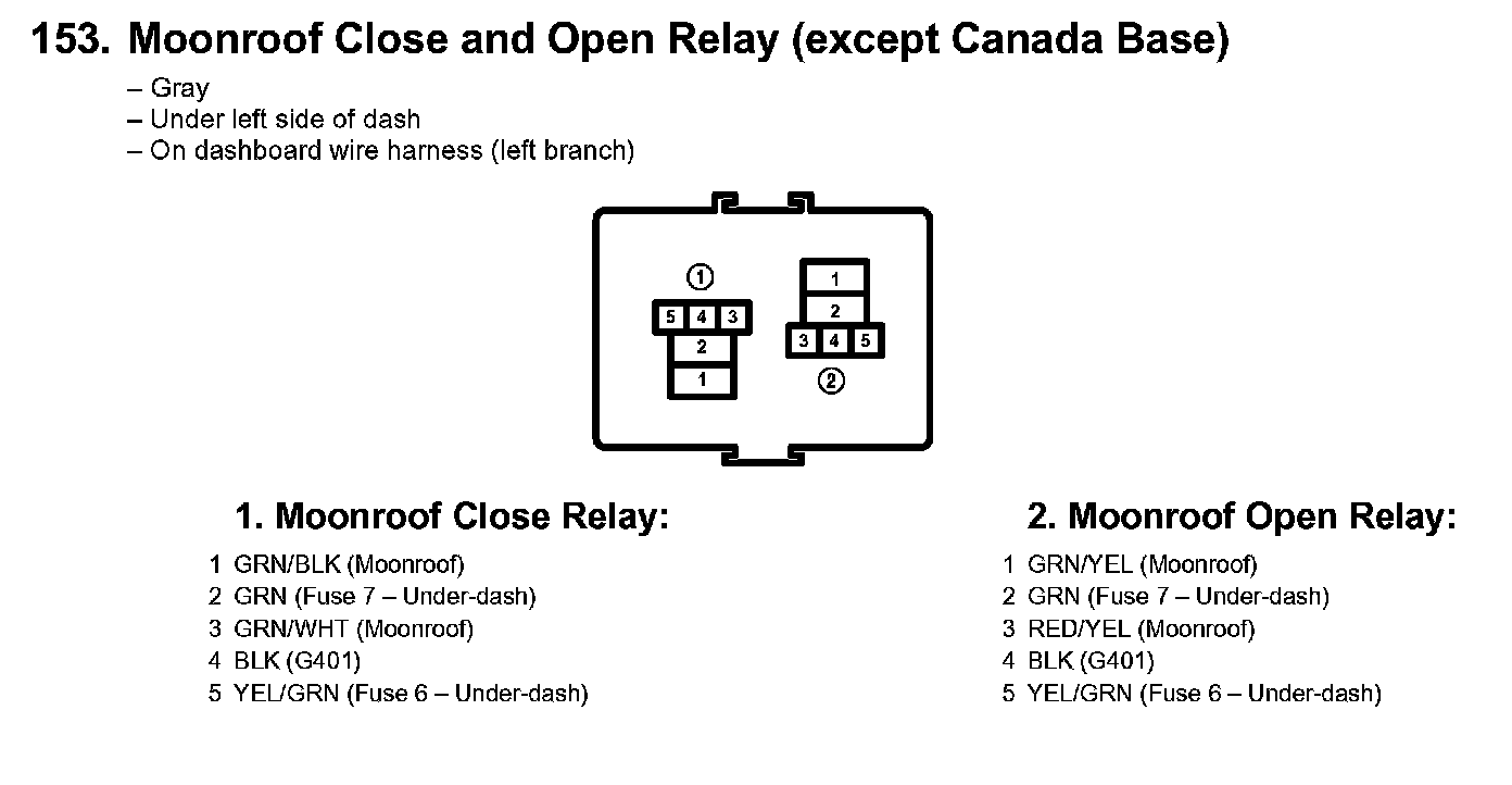 153. Moonroof Close And Open Relay (except Canada Base):