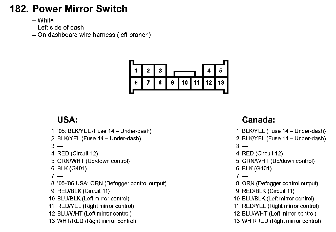 182. Power Mirror Switch:
