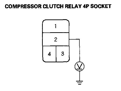 4. Measure the voltage between the No.2 terminal of the compressor clutch relay 4P socket and body ground.