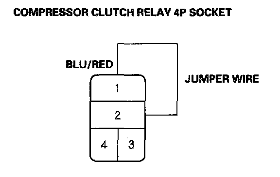 5. Connect the No.1 and No.2 terminals of the compressor clutch relay 4P socket with a jumper wire.