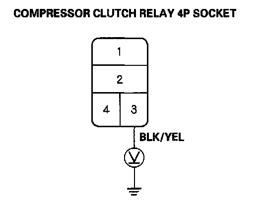 16. Check for continuity between the No.1 terminal of the compressor clutch relay 4P socket and the No.1 terminal of the compressor clutch 1P connector.