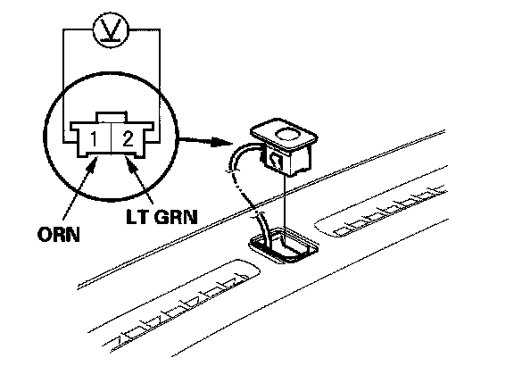 Turn the ignition switch ON (II). Measure the voltage between the terminals with the (+) probe on the No.1 terminal and the (-) probe on the No.2 terminal with the 2P connector connected. The voltage will not change under the light of a flashlight or a fluorescent lamp. Voltage should be: