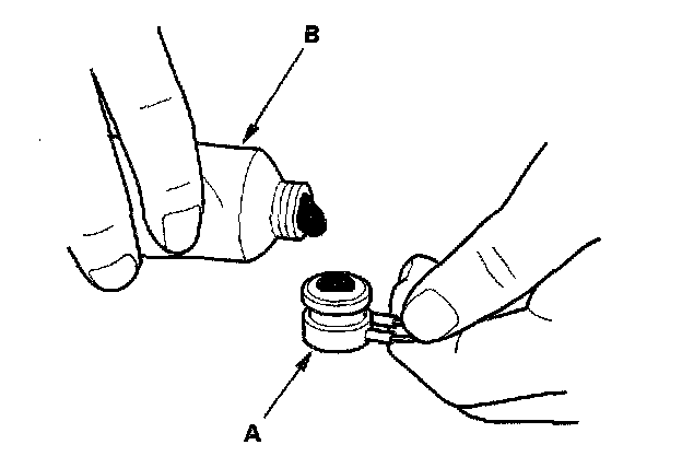 Compressor Thermal Protector Replacement1. Remove the bolt, the ground terminal (A), and the holder (B). Disconnect the field coil connector (C), then remove the thermal protector (D).