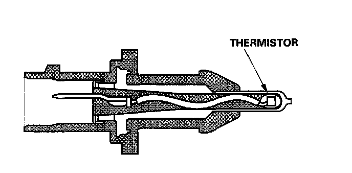 The ECT sensor is a temperature dependent resistor (thermistor). The resistance of the thermistor decreases as the engine coolant temperature increases.