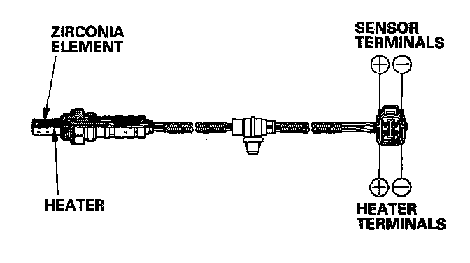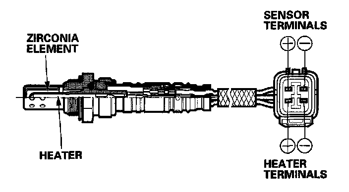 The secondary HO2S detects the oxygen content in the exhaust gas downstream of the Three Way Catalytic Converter (TWC) and sends signals to the ECM/PCM which varies the duration of fuel injection accordingly. To stabilize its output, the sensor has an internal heater. The secondary HO2S is installed in the TWC.