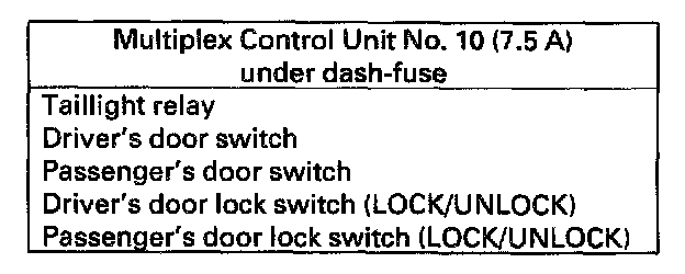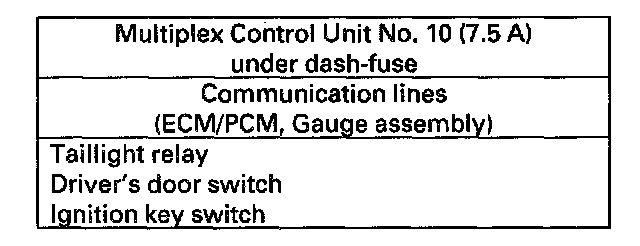1. Check the No.9 (7.5 A) fuse in the under-hood fusel relay box and the No.10 (7.5 A) fuse in the under- dash fuse/relay box.