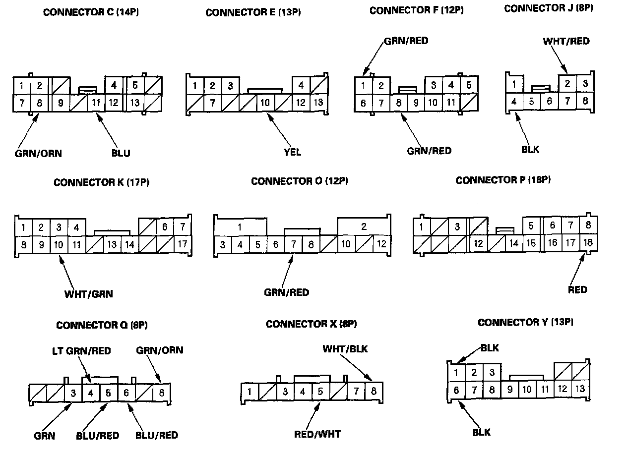 2. Disconnect the under-dash fuse/relay box connectors C, E, F, J, K, O, P, Q, X and Y.