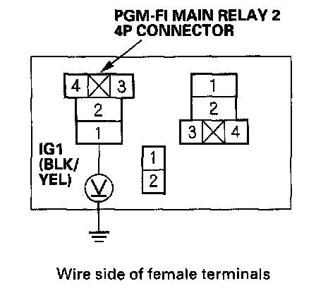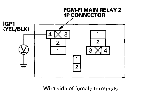 4. Measure voltage between PGM-FI main relay 2 4P connector terminal No.4 and body ground.