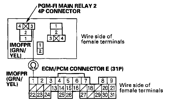 NO - Repair open in the wire between PGM-FI main relay 2 and the ECM/PCM (E1).