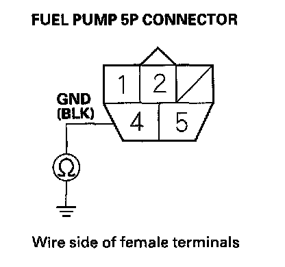 25. Check for continuity between fuel pump 5P connector terminal No.4 and body ground.