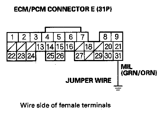11. Connect ECM/PCM connector terminal E31 and body ground with a jumper wire.