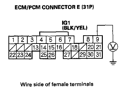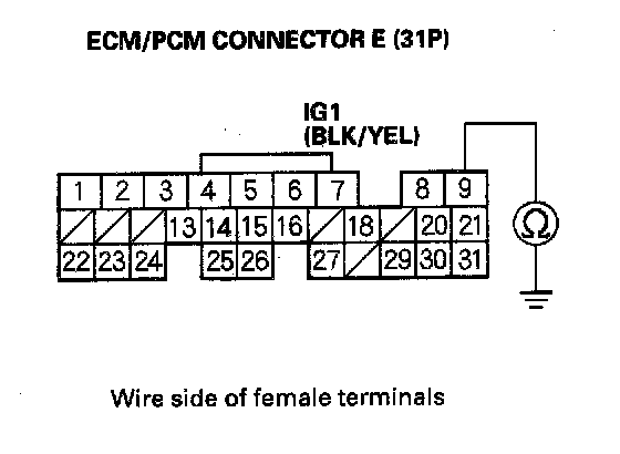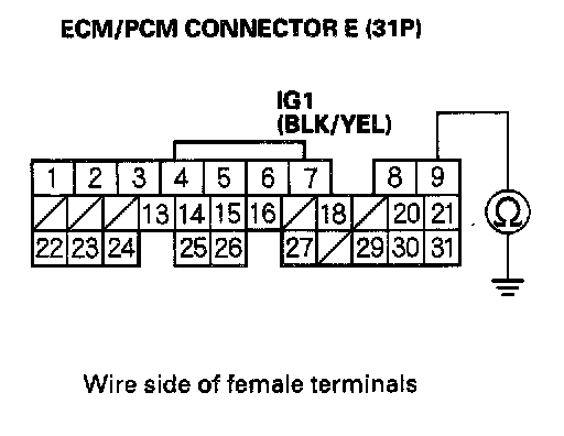 25. Check for continuity between ECM/PCM connector terminal E9 and body ground.