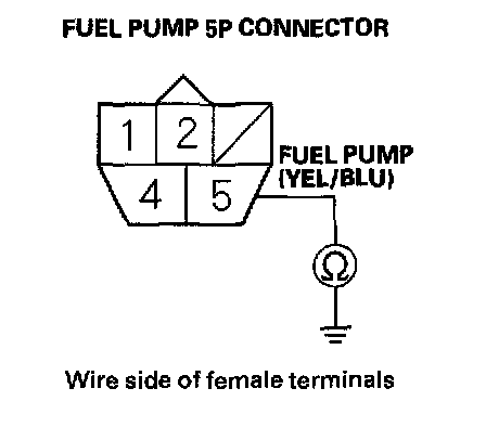 31. Check for continuity between fuel pump 5P connector terminal No.5 and body ground.