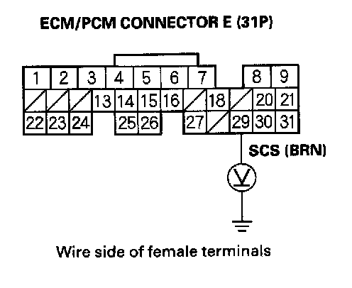 76. Measure voltage between ECM/PCM connector terminal E29 and body ground.