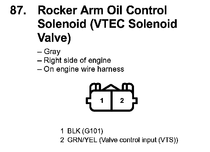 87. Rocker Arm Oil Control Solenoid (VTEC Solenoid Valve):