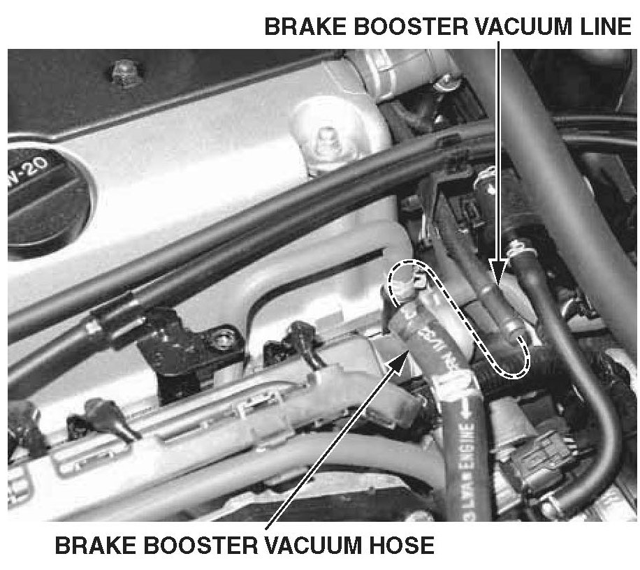 5. Disconnect the brake booster vacuum hose from the brake booster vacuum line.