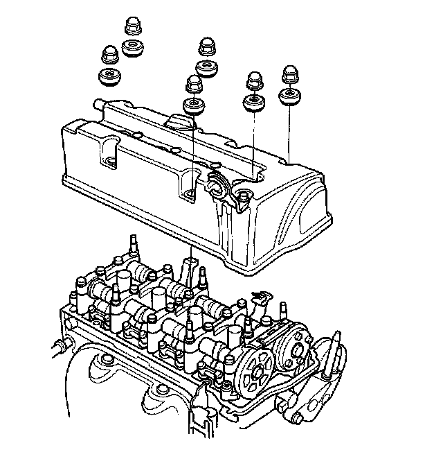 Cylinder Head Cover, (A) P/S Hose Bracket, (B) Oil Dipstick, (C) Breather Hose.: