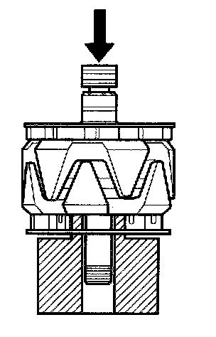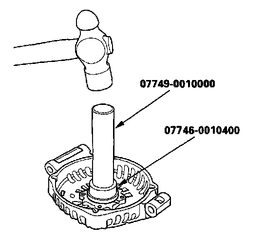 14. With a hammer and the special tools, install a new front bearing in the drive-end housing.