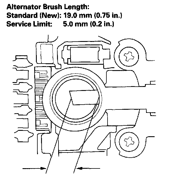 - If either brush is shorter than the service limit, replace the rear housing assembly.