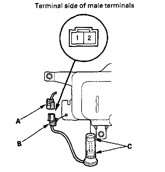 3. Check for continuity between the No.1 and No.2 terminals in each float position (C).
