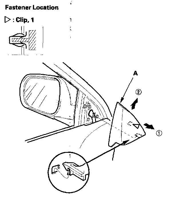2. Carefully pry out the mirror mount cover (A) by hand in the sequence shown.