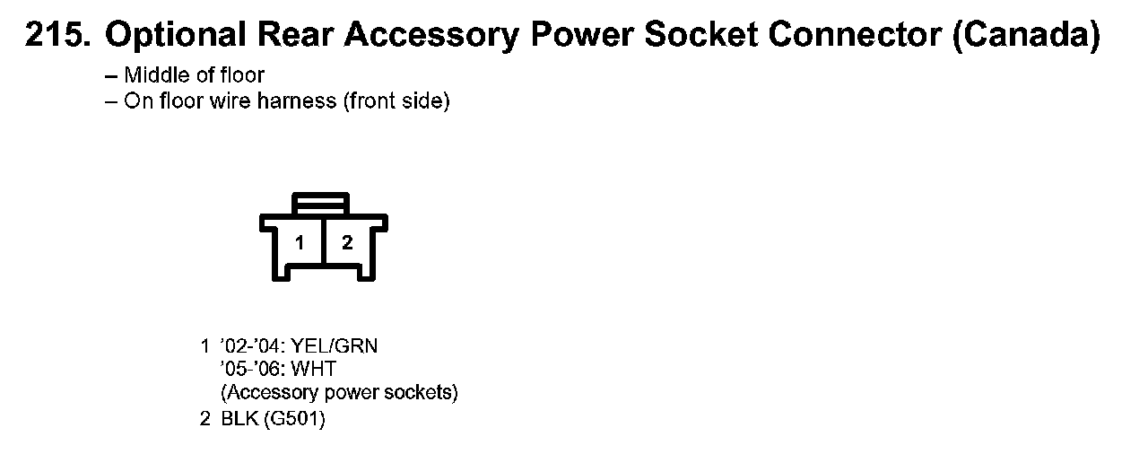 215. Optional Rear Accessory Power Socket Connector (Canada):