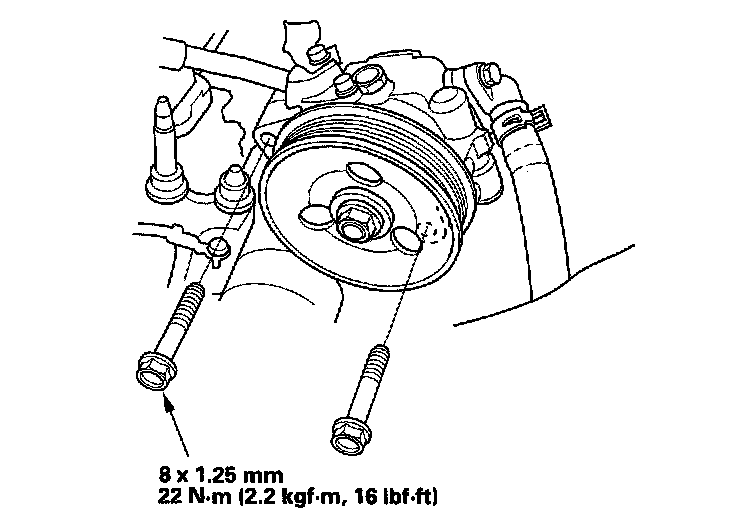 25. Install the bolt securing the P/S hose bracket.
