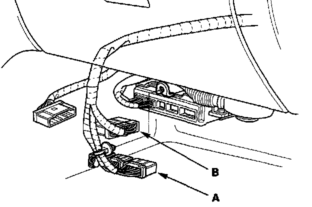 29. Connect the ECM/PCM connectors (A) and main wire harness connector (B).
