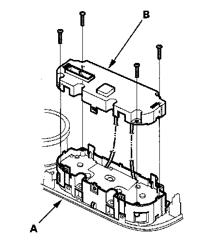 2. Remove the self-tapping screws, then carefully separate the climate control unit to the display (A) and the control unit (B). Do not kink or pull on the wires between the display and the control unit. Do not touch the electronic components on the printed circuit board in the control unit.
