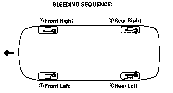 5. Repeat the procedure for each wheel in the sequence shown below until air bubbles no longer appear in the fluid.