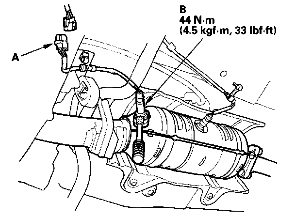 1. Disconnect the A/F sensor 4P connector (A), then remove the A/F sensor (B).