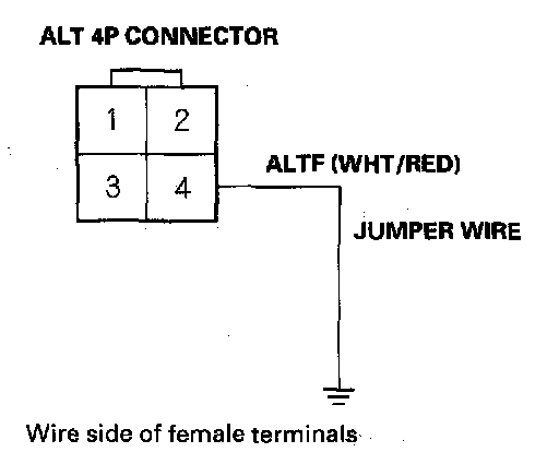 11. Connect ALT 4P connector terminal No.4 and body ground with a jumper wire.