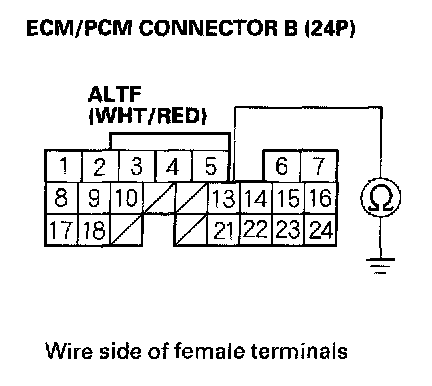 12. Check for continuity between body ground and ECM/PCM connector terminal B13.