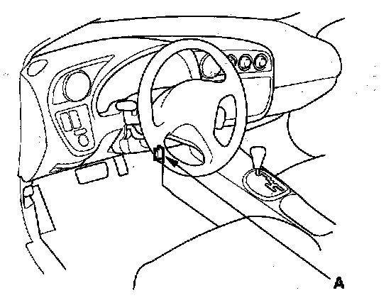 2. If the MIL stays on, connect the HDS or an OBD II scan tool to the Data Link Connector (DLC) (A) located under the driver's side of the dashboard.