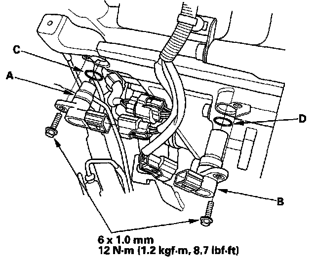 4. Install the new O-ring (D) on the countershaft speed sensor, and install the countershaft speed sensor in the transmission housing.