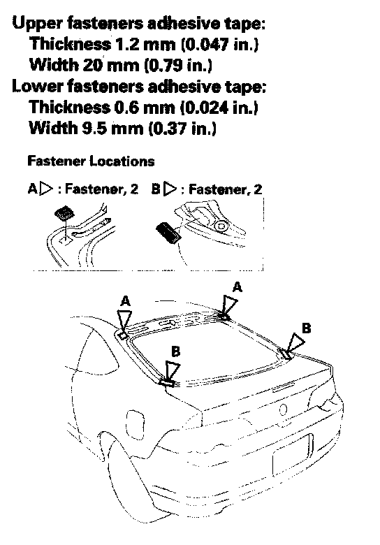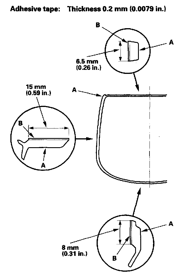 12. Apply primer to the inside face around the entire molding (A), and apply the double-sided adhesive tape (B). Do not peel off the adhesive backing.