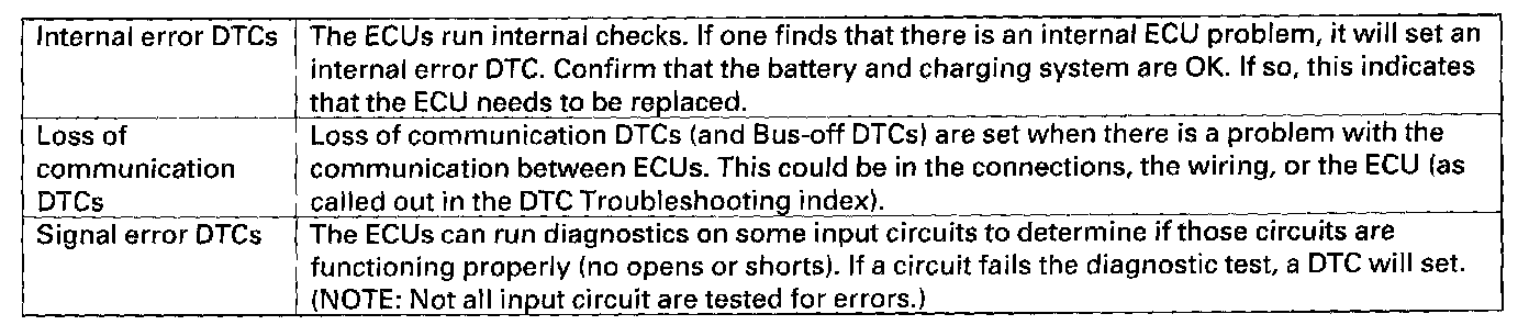 There are three types of DTCs used by the CAN networks.