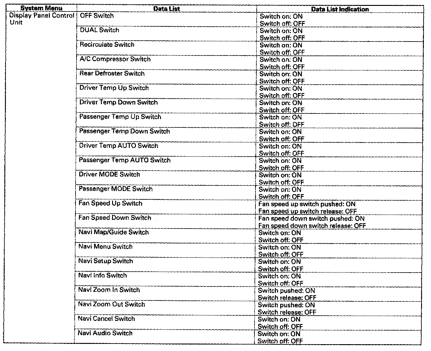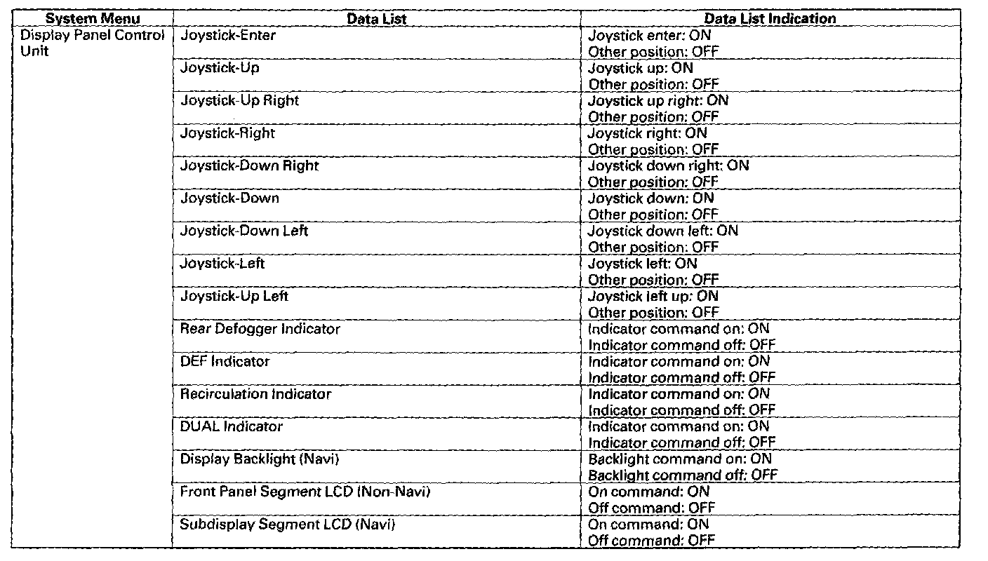 NOTE: If the problem is related to the display panel control unit or HandsFreeLink system, check for DTCs first with their own self-diagnostic function.