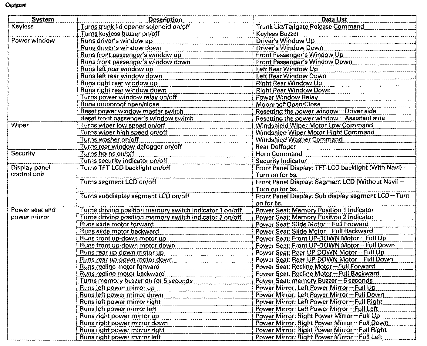 Body Control Systems: Description and Operation