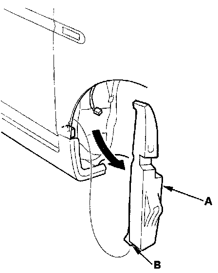 3. Pull out the front fender fairing (A) by pushing up and releasing the hook (B) from the bracket.