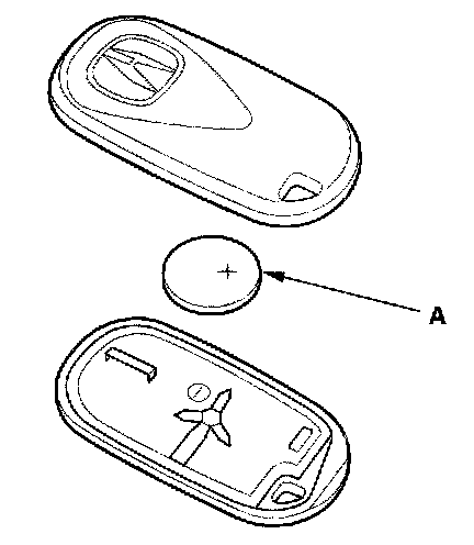 3. Replace the transmitter battery (A) with a new one, and try to lock and unlock the doors with the transmitter by pressing the lock or unlock button five or six times.
