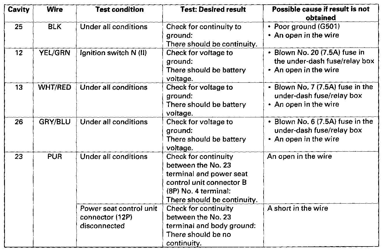 Power Mirror Control Unit Input Test
