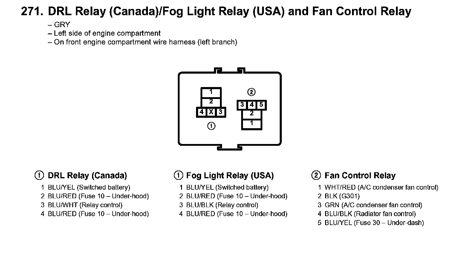 271. DRL Relay (Canada)/Fog Light Relay (USA) And Fan Control Relay:
