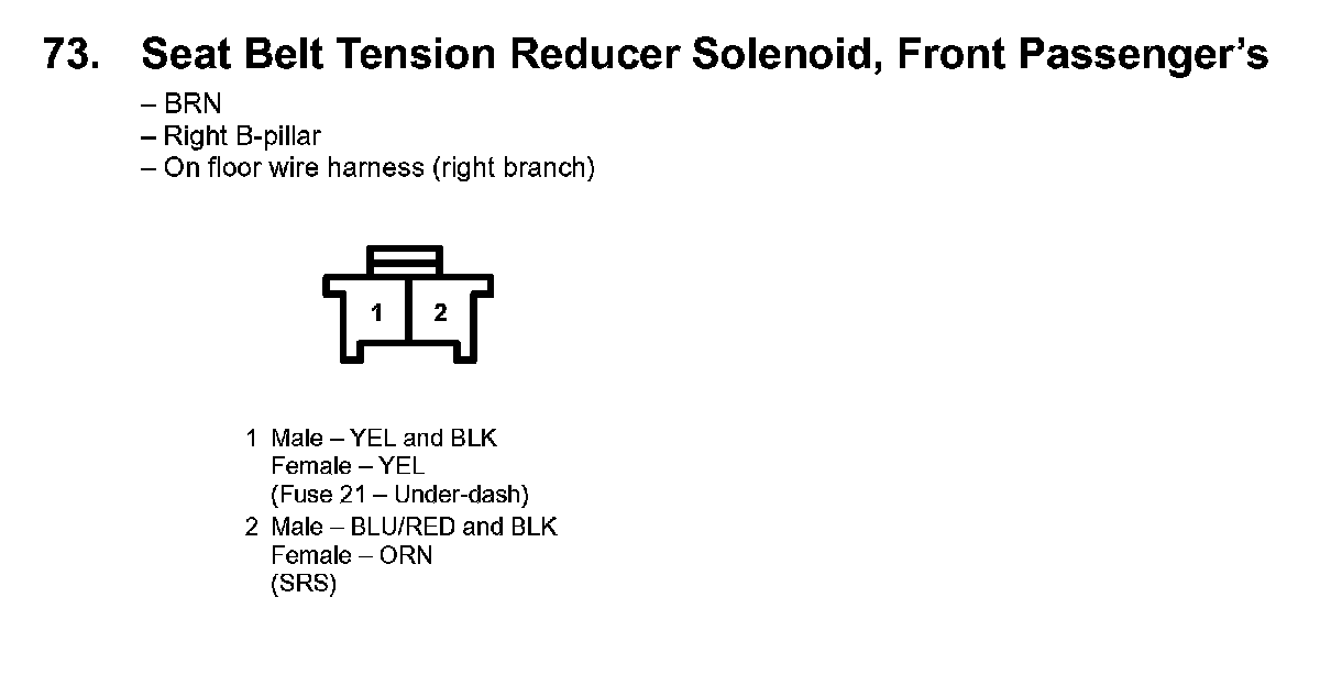 73. Seat Belt Tension Reducer Solenoid, Front Passenger's:
