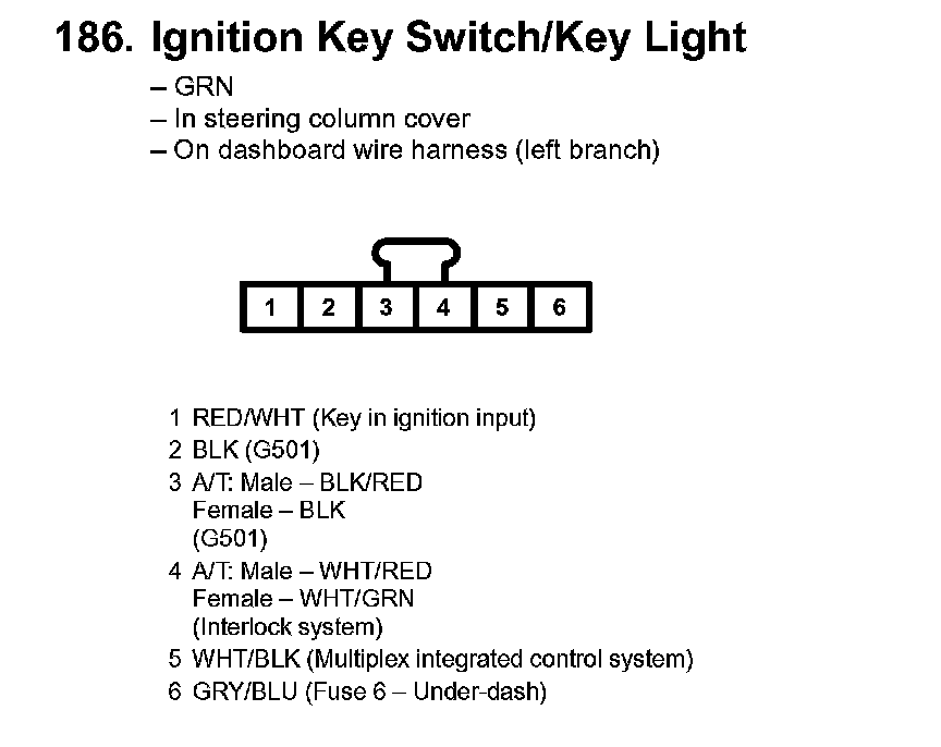 186. Ignition Key Switch/Key Light: