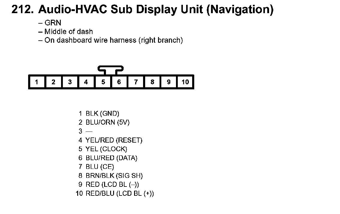 212. Audio-HVAC Sub Display Unit (Navigation):