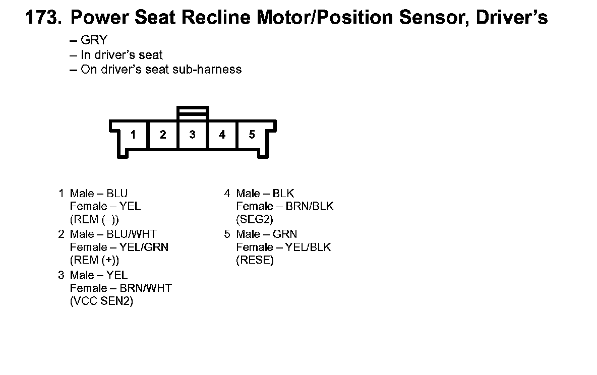 173. Power Seat Recline Motor/Position Sensor, Driver's: