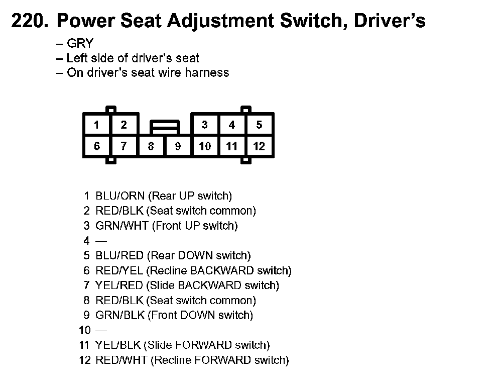 220. Power Seat Adjustment Switch, Driver's: