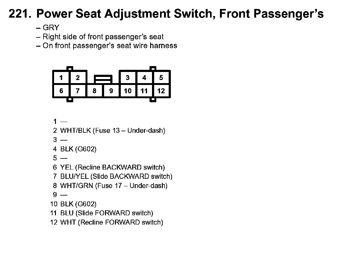 221. Power Seat Adjustment Switch, Front Passenger's: