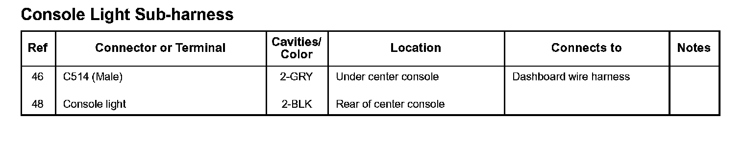 Console Light Sub-harness: